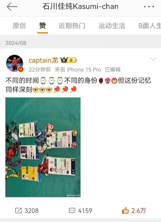 近段时辰,对于日本乒乓球前一姐石川佳纯与中国乒乓球男队队长马龙之间的互动,成为了人人关注的话题和焦点。而在归国后,马龙在冒失媒体上发布动态,晒出了我方五届奥运会的参赛证并配文:“不同的时辰,不同的身份,但这份挂牵相通久了。”另外,马龙还晒出了汇集到的各式Pin。天然,这内部球迷们最为温和的石川佳纯送的也包括在内部。在这样动态发出后没多久,石川佳纯就速即作念出了复兴,为马龙的这条动态点了赞。有网友笑称:尽然是龙队的小迷妹,技能紧盯着马龙的动态。