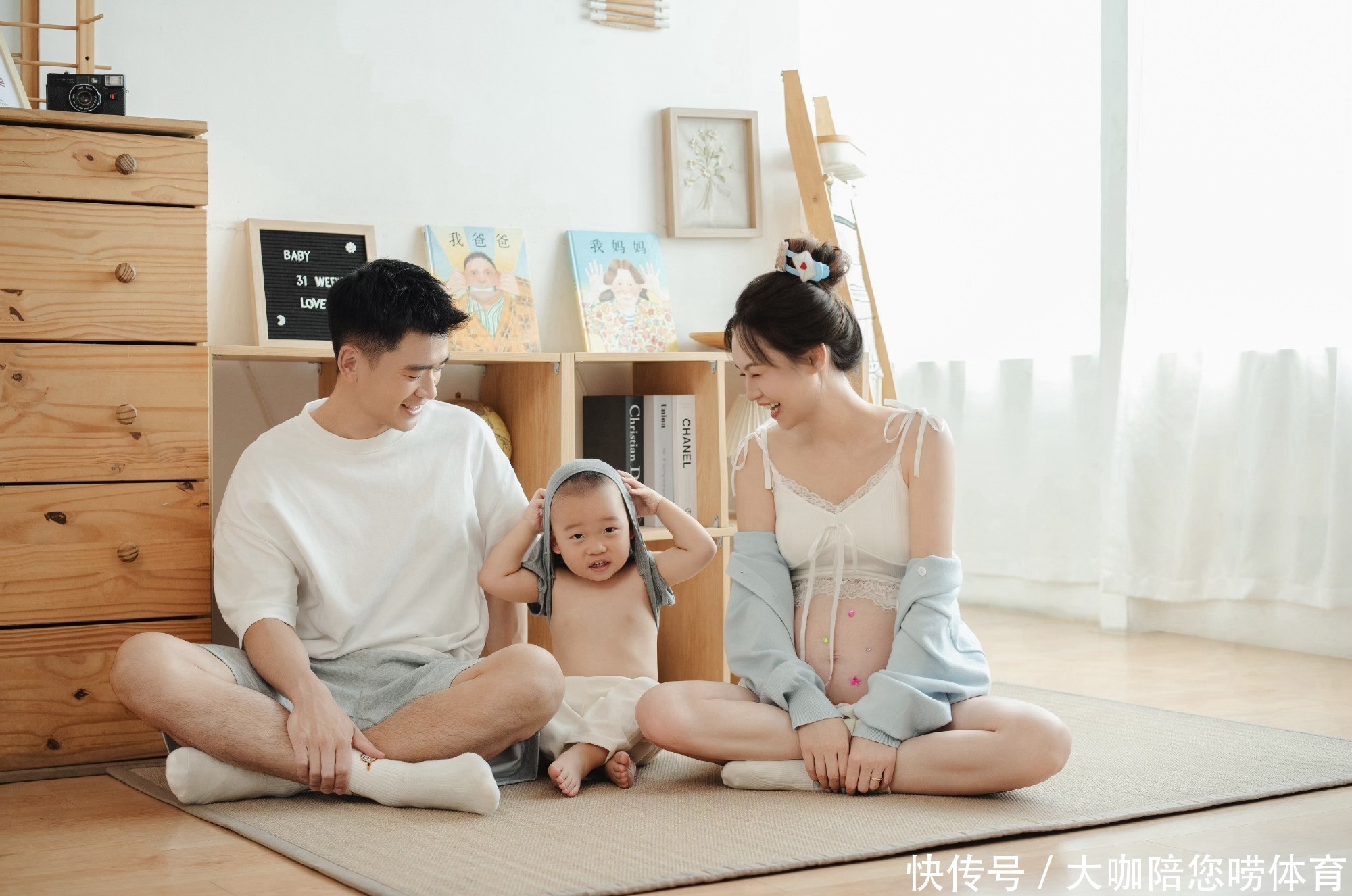在郑念念维的酬酢媒体晒出的像片上,他们一家三口东说念主现身!离镜头最近的是郑念念维的女儿!他头发很短,穿戴白色上衣,灰色的长裤,光脚站在地上。两只手托着气球。气球太大还用头顶着!在新的家庭成员莫得成立,女儿仍是照旧C位!死后是郑念念维和细君。郑念念维站在镜头左边,他穿戴白色衬衫,白色长裤,穿戴白色袜子。一只手扶着身前的女儿,另外一只手从死后搂着细君的肩膀。